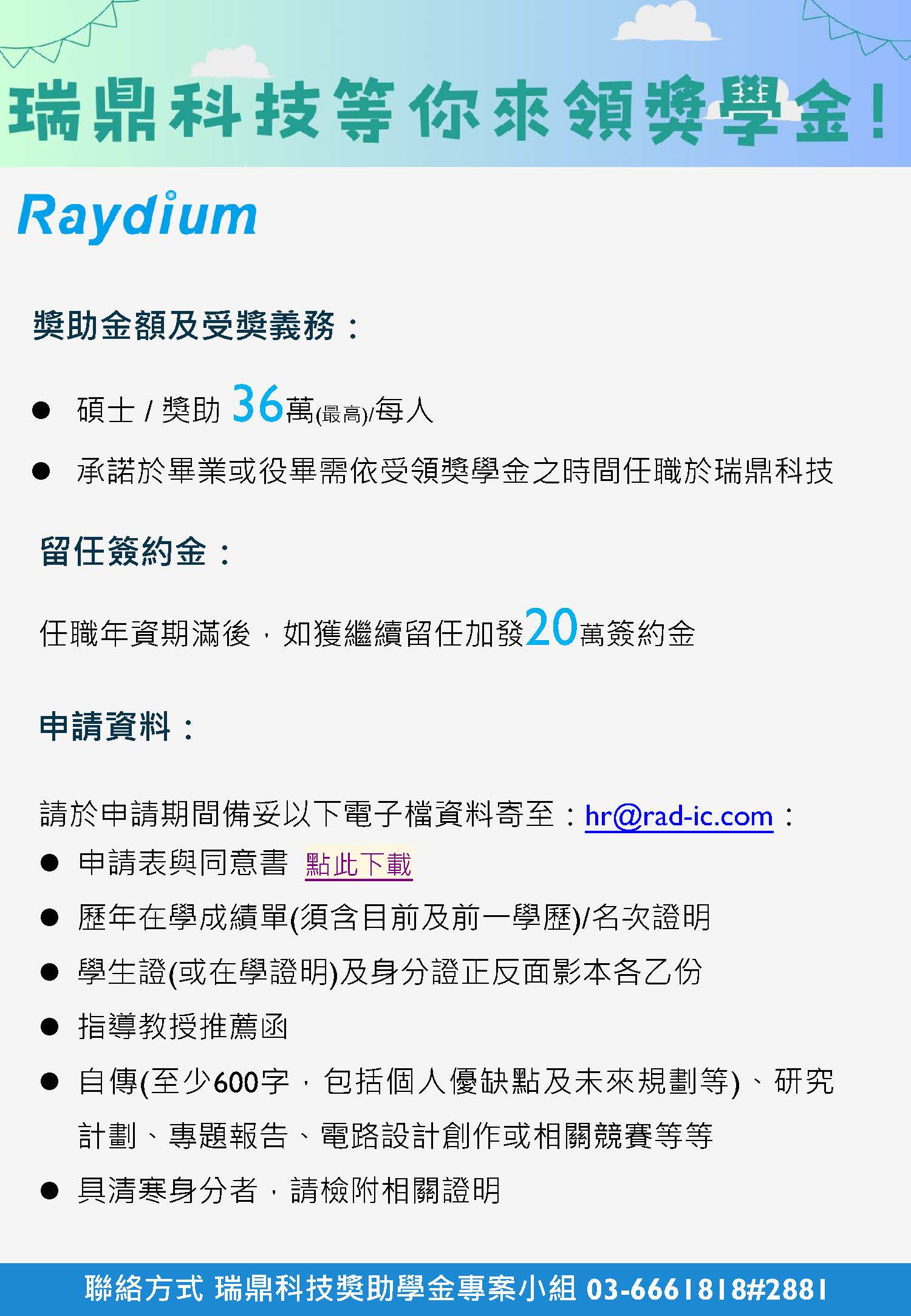 瑞鼎科技人才培育獎學金申請辦法 申請日為 5/1~5/31